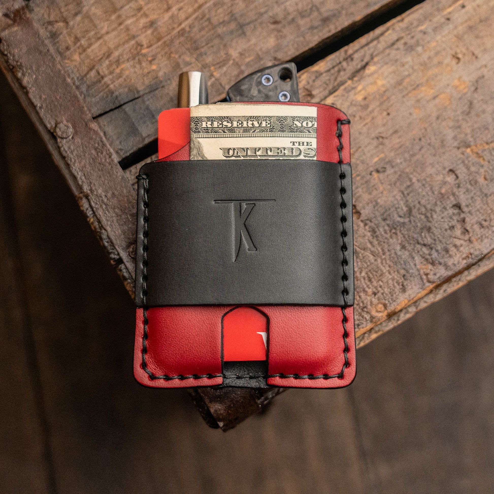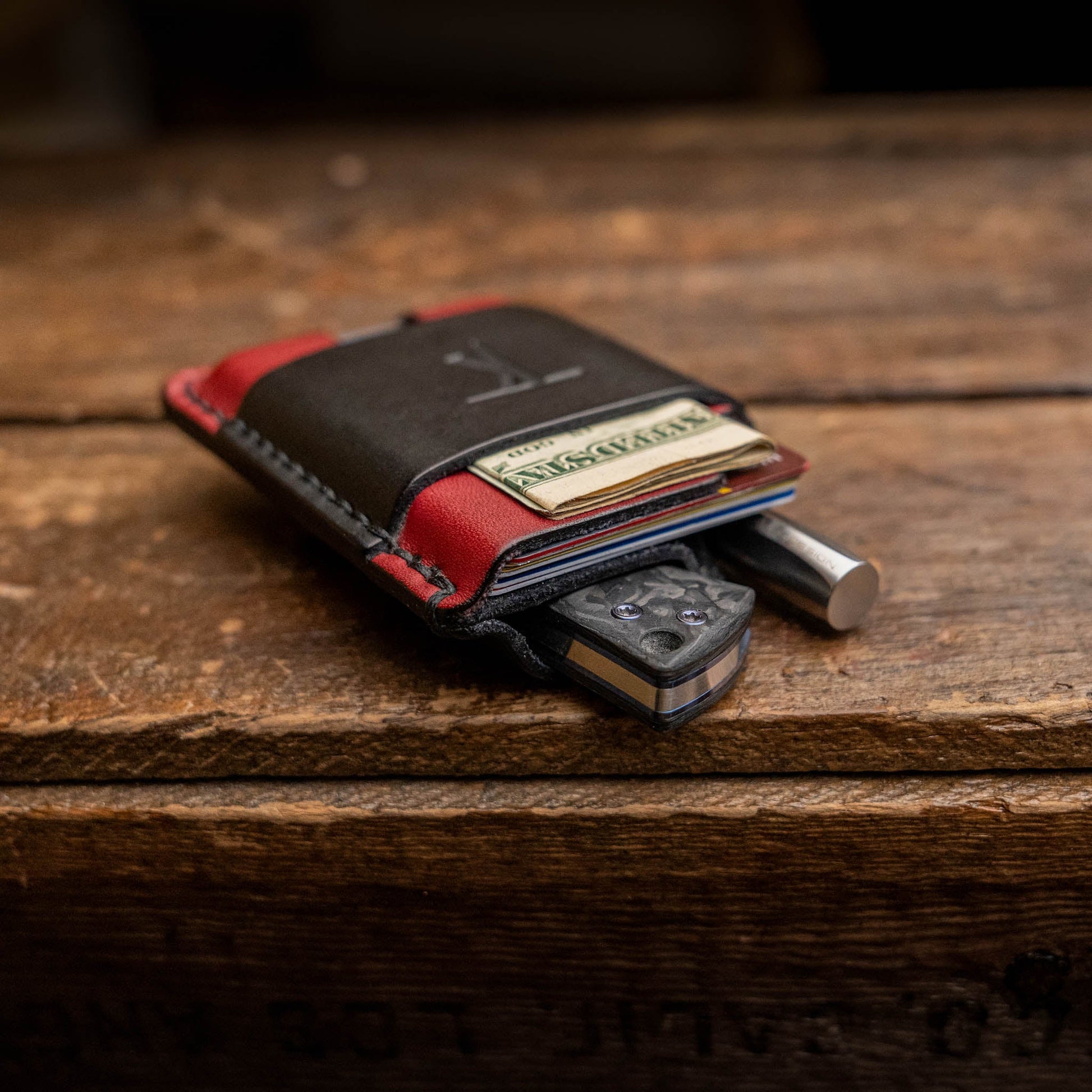 Add a pop of color to your everyday carry with our Red Line Mini Bandit 2.0. Designed to hold a small knife, pen, up to five credit cards, and some cash, this compact wallet features a red stitch and is branded with the Tale of Knives logo.Ships in 5-7 business days.